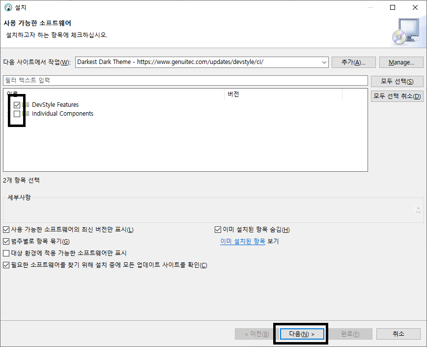3. 선택 : 두개 다 선택해도 되나, 위에 DevStyle Features 만 선택하는 것을 추천