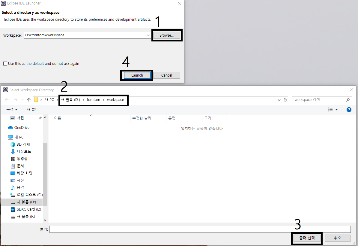 1. D:\tomtom\workspace 폴더 생성(이클립스 시작시 여기폴더 지정)