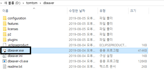 - 필자는 D:\tomtom\dbeaver 에 풀음.
