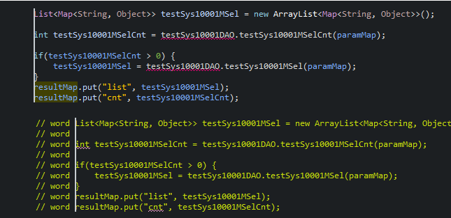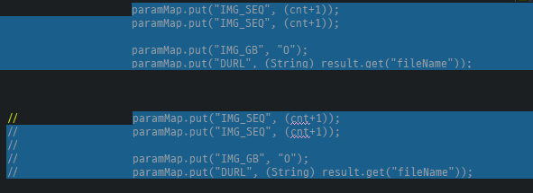 9. 영역 주석 처리 : Ctrl + Shift + C (라인마다 "//" 으로 주석처리됨.)
