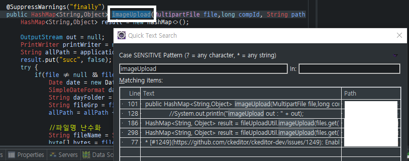 - Scope : 프로젝트 또는 설정대로 검색 범위를 산정(미설정시 현재 열려있는 프로젝트 전부가 됨.)