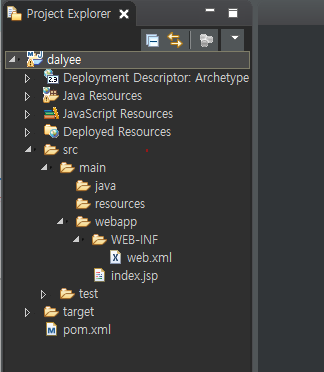메이븐 프로젝트를 설치하면 그림과같이 프로젝트아이콘에 X 가 붙어있을 것이다.